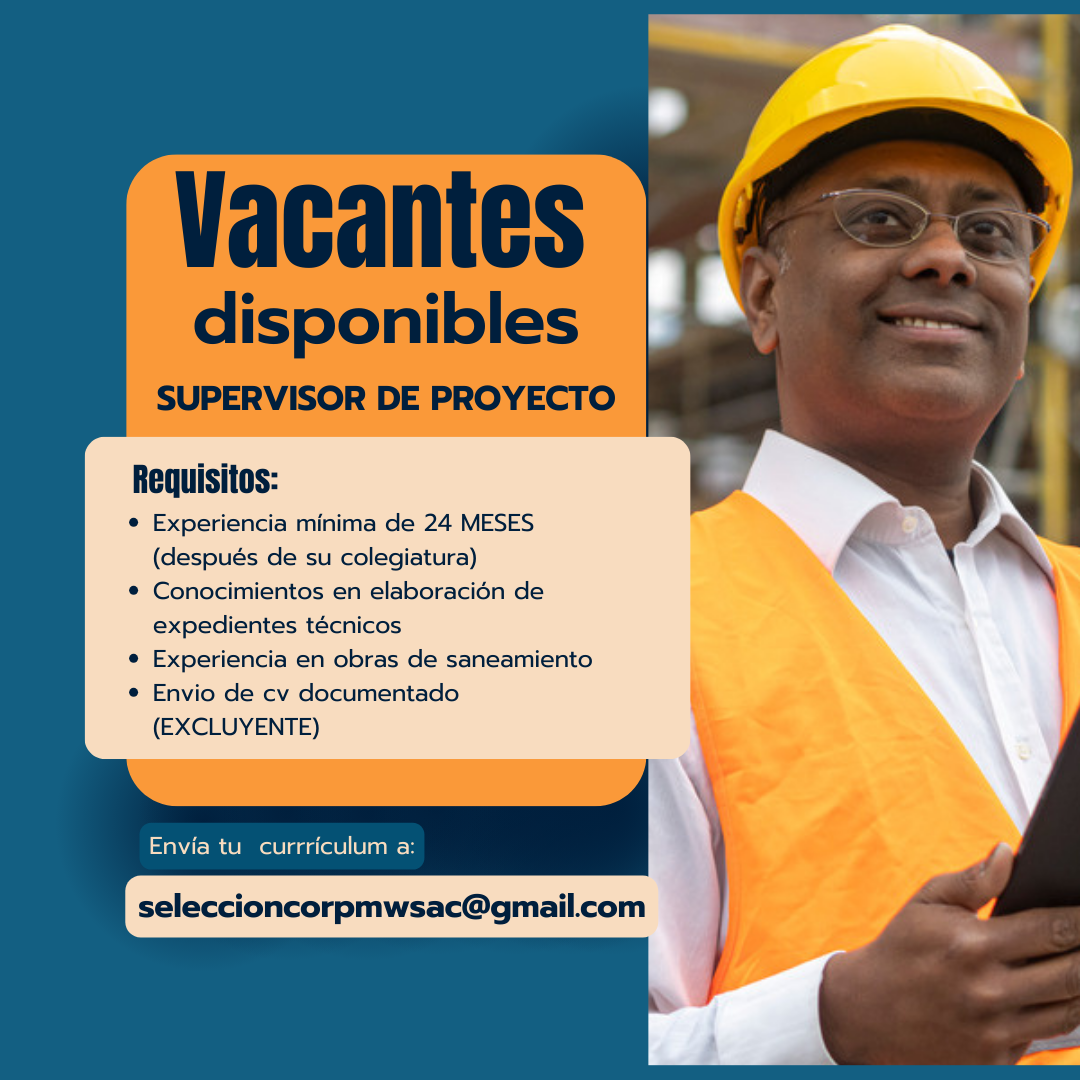 La empresa CORP MW – MW Contratistas Generales SAC invita a profesionales especializados a postular a las siguientes vacantes:
