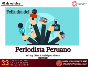 Hoy 1 de octubre se celebra el Día del Periodista en el Perú. conmemorando la creación del Diario de Lima, fundado por el periodista Francisco Antonio Evaristo Cabello y Mesa, quien escribía bajo el seudónimo de Jaime Bausate y Meza. En el Consejo Departamental del Callao, del Colegio de Ingenieros del Perú, nos sentimos muy felices de conmemorar esta fecha. ¡Feliz día del Periodista Peruano!