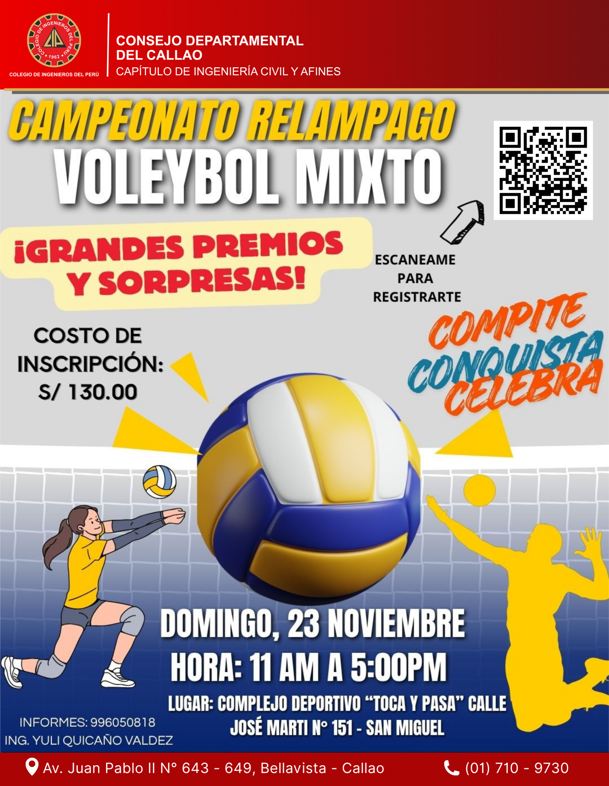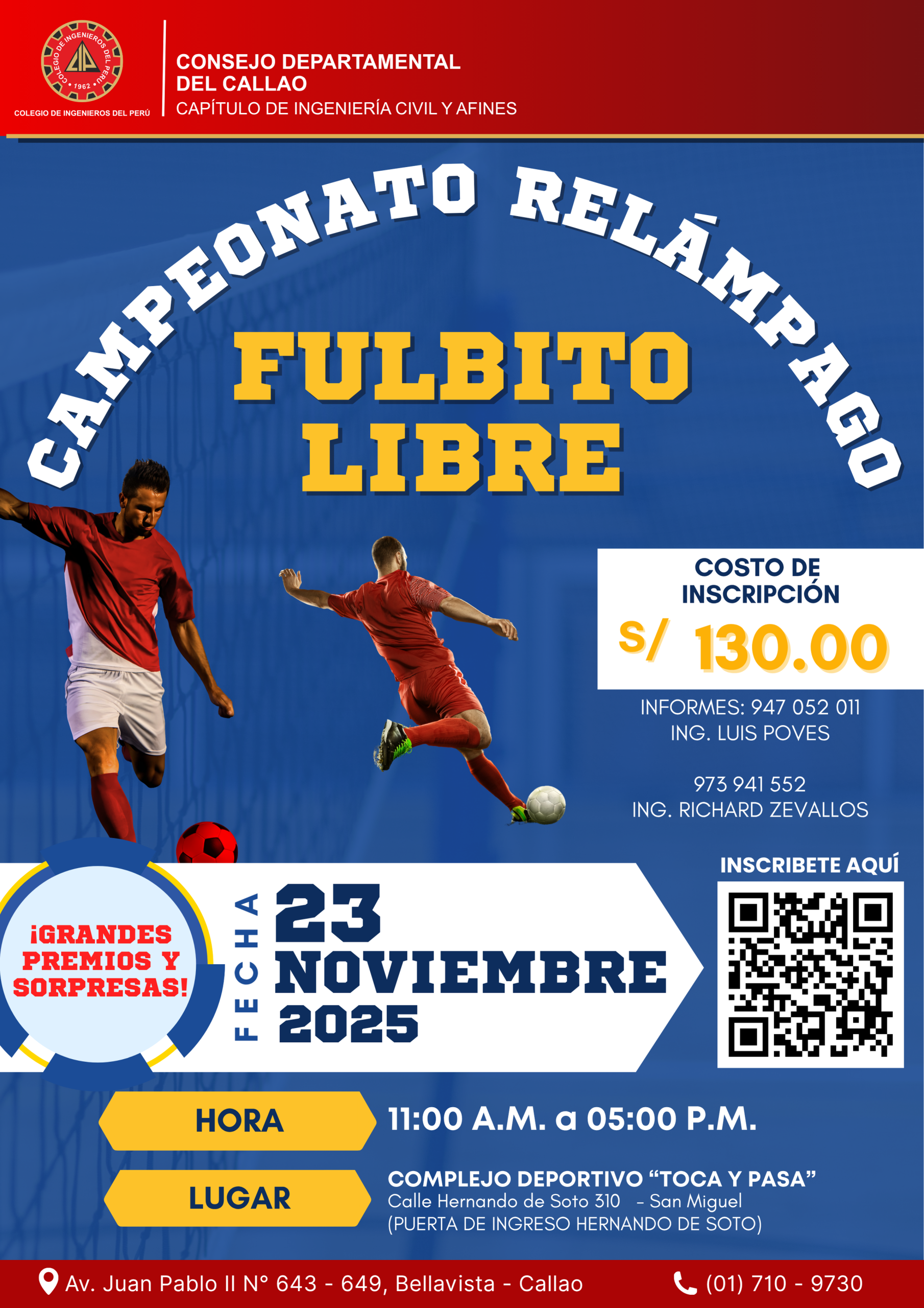 El Capítulo de Ingeniería Civil y Afines del CIP CD CALLAO, en el marco de su Semana de Aniversario, invita a todos los ingenieros, de todas las especialidades y al público en general, a participar en este gran torneo deportivo 💪🔵 📅 Fecha: 23 de noviembre […]