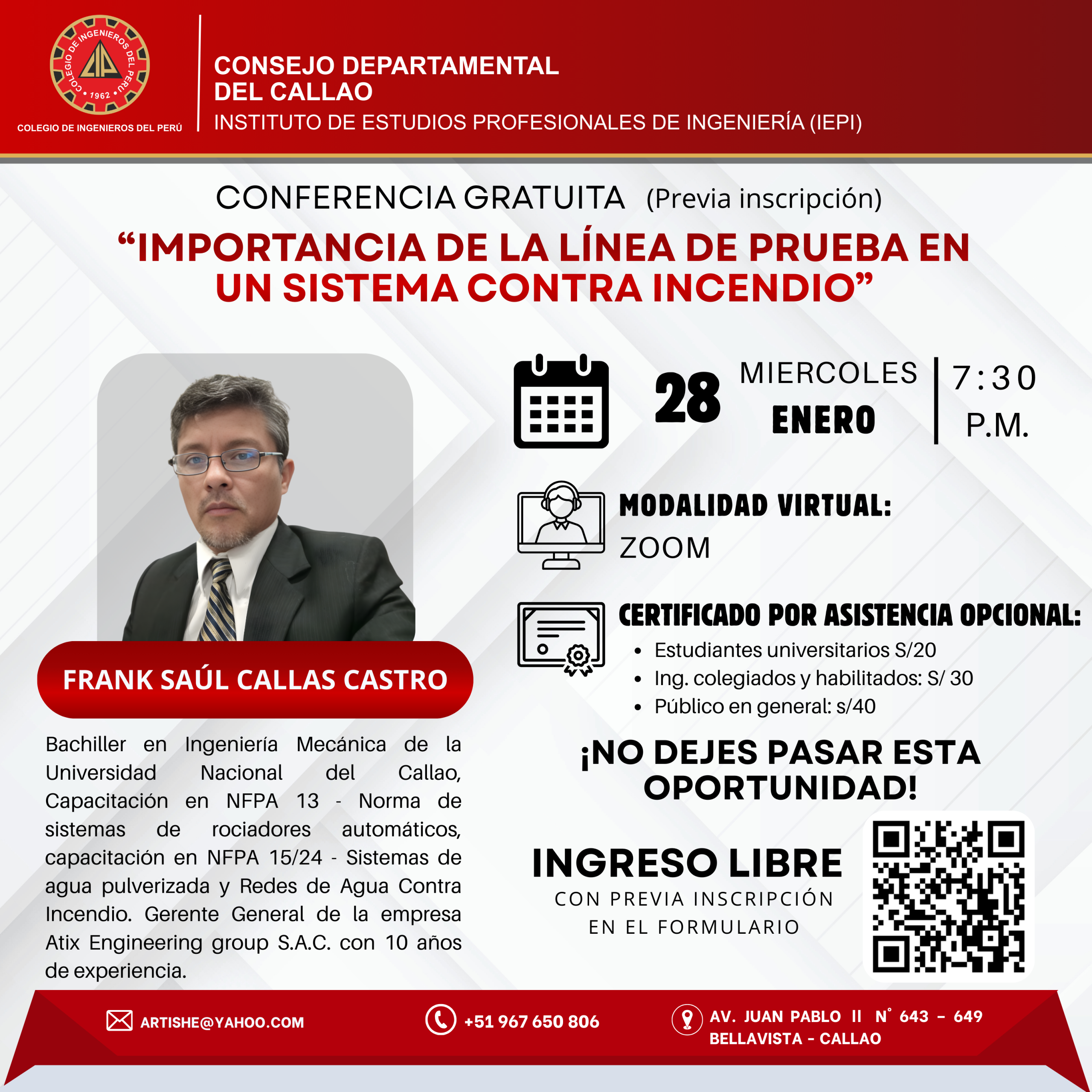 👨🏫 𝗘𝘅𝗽𝗼𝘀𝗶𝘁𝗼𝗿: Bach. Frank Saúl Callas Castro Bachiller en Ingeniería Mecánica por la Universidad Nacional del Callao, con capacitación en NFPA 13 (Sistemas de rociadores automáticos) y NFPA 15/24 (Sistemas de agua pulverizada y redes de agua contra incendio). Gerente General de Atix Engineering Group S.A.C., […]